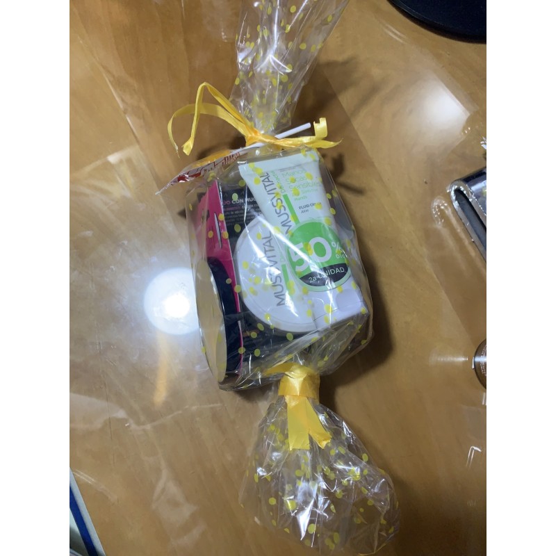 Cesta compuesta por : -musvital crema de manos 200ml -espejo beter aumento -barra camaleon magic con pañuelo