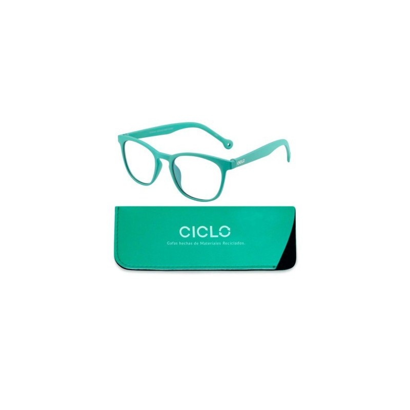 Ciclo gafas de presbicia triana verde goma +1,00. Gafas de farmacia de calidad para presbicia o vista cansada. El plástico y la goma tienen propiedades perfectas para nuestras gafas: comodidad, ligereza y resistencia. Estos dos materiales generalmente tienen un gran impacto medioambiental, por eso en ciclo los reciclamos creando gafas más sostenibles y ayudando a reducir su impacto.