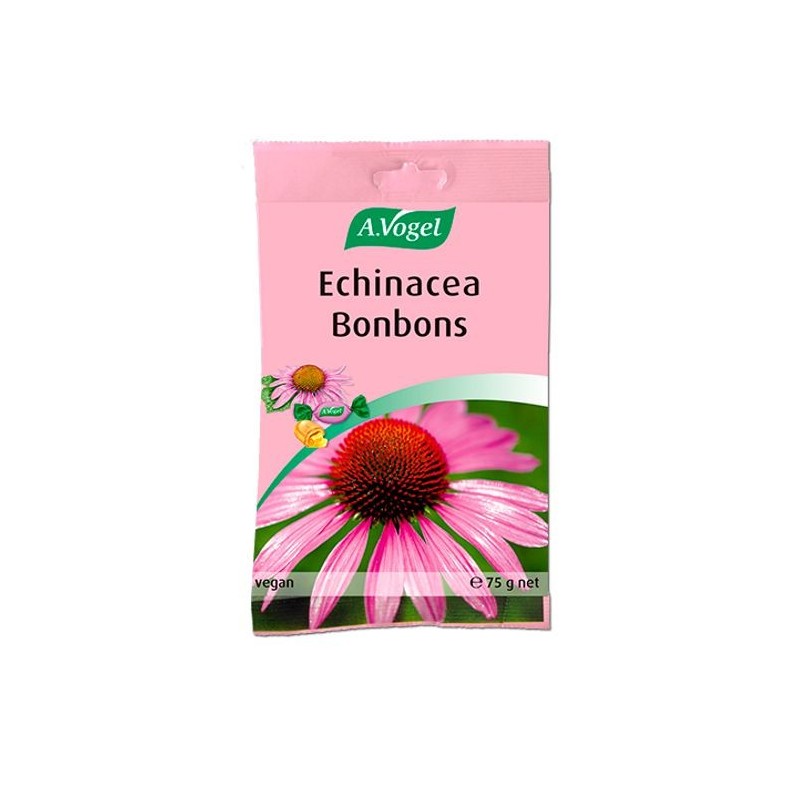 Los Echinacea Bonbons de A. Vogel son unos caramelos refrescantes rellenos de extracto natural de echinacea fresca de cultivo ecológico, gracias a este contenido, actúan como antimicrobianos, en contra de virus, hongos y demás afecciones infecciosas.